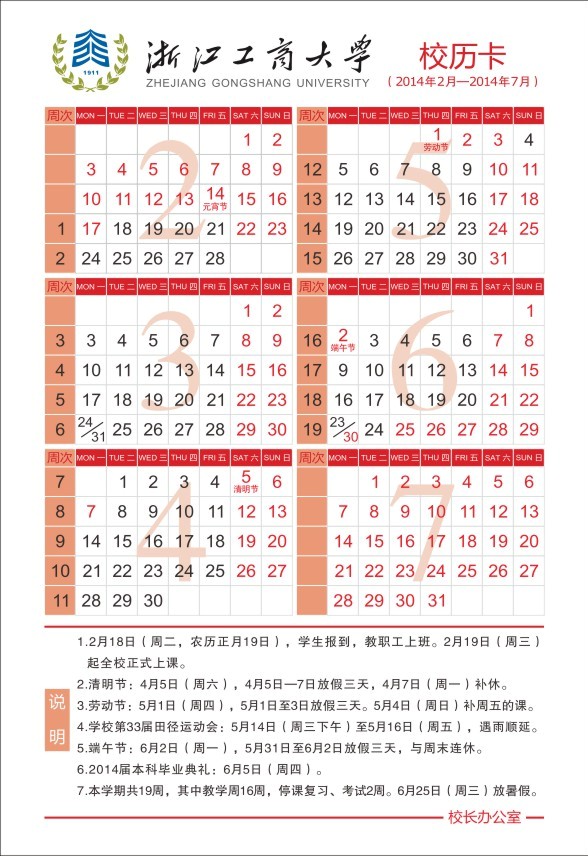 2013-2014学年第二学期校历卡